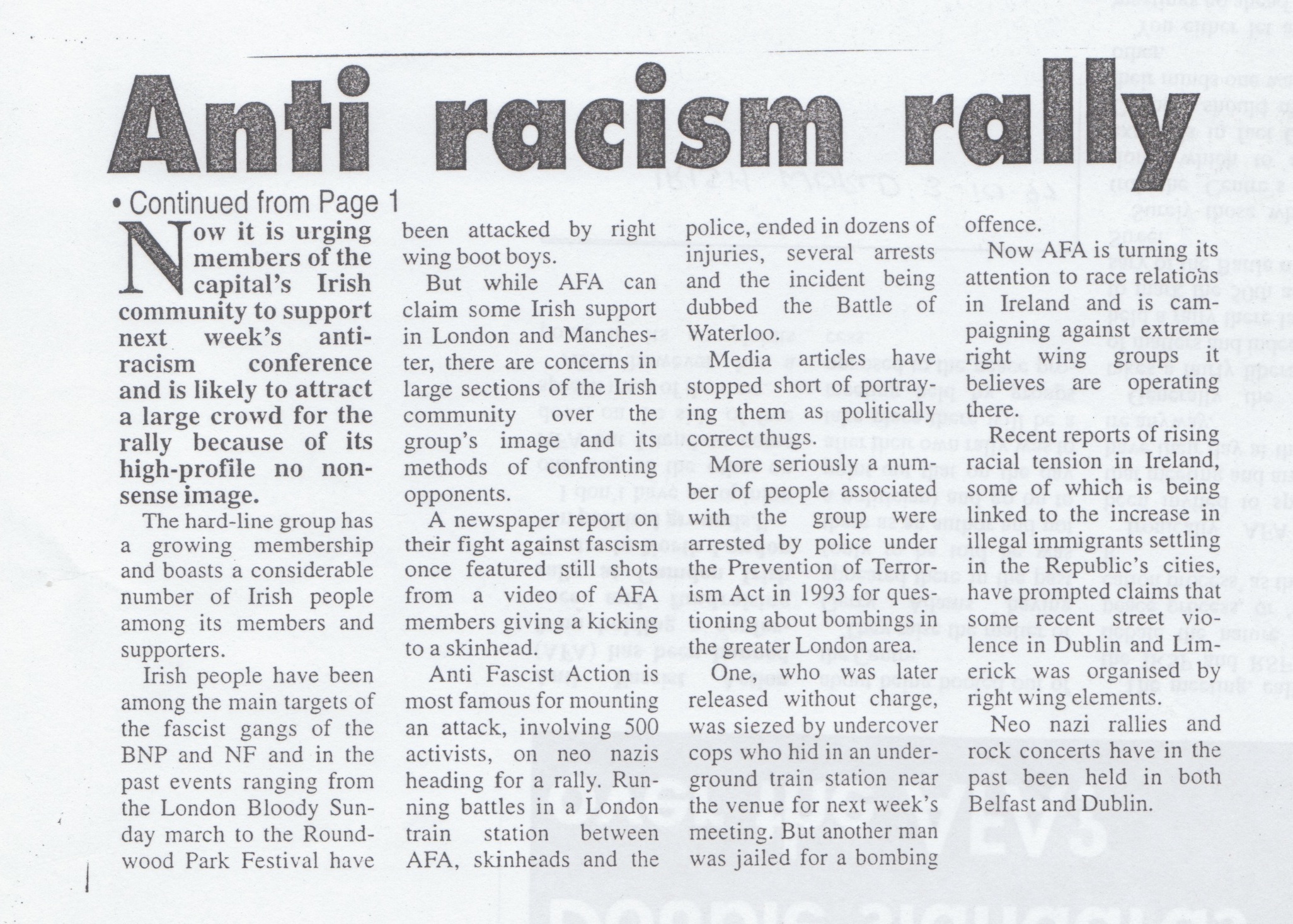 - Irish Centre bans Anti-Fascist Rally (Irish Post, 4 Oct 1997)
