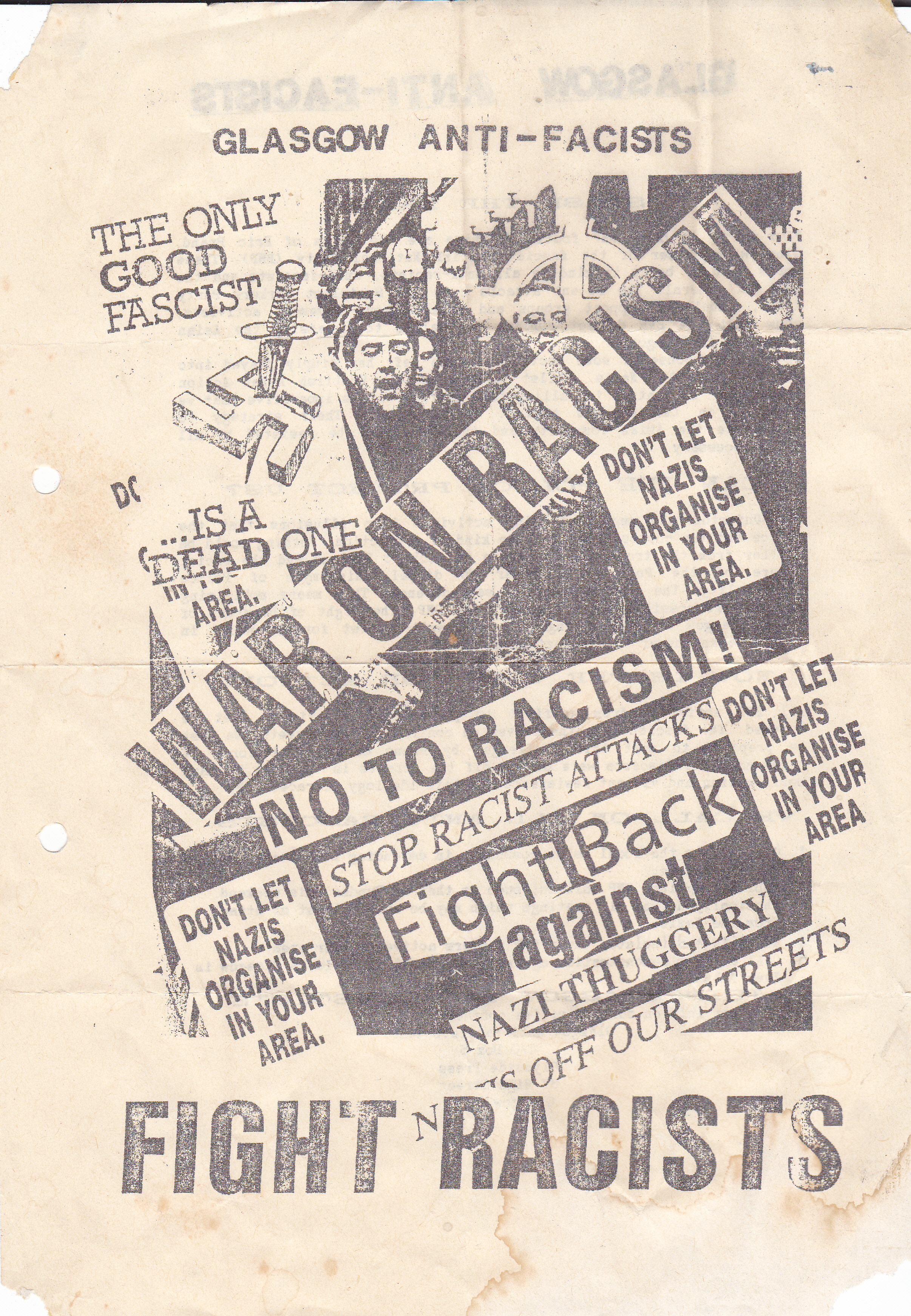 • Glasgow AFA leaflet for a public meeting regarding a rise in racist and fascist activity.